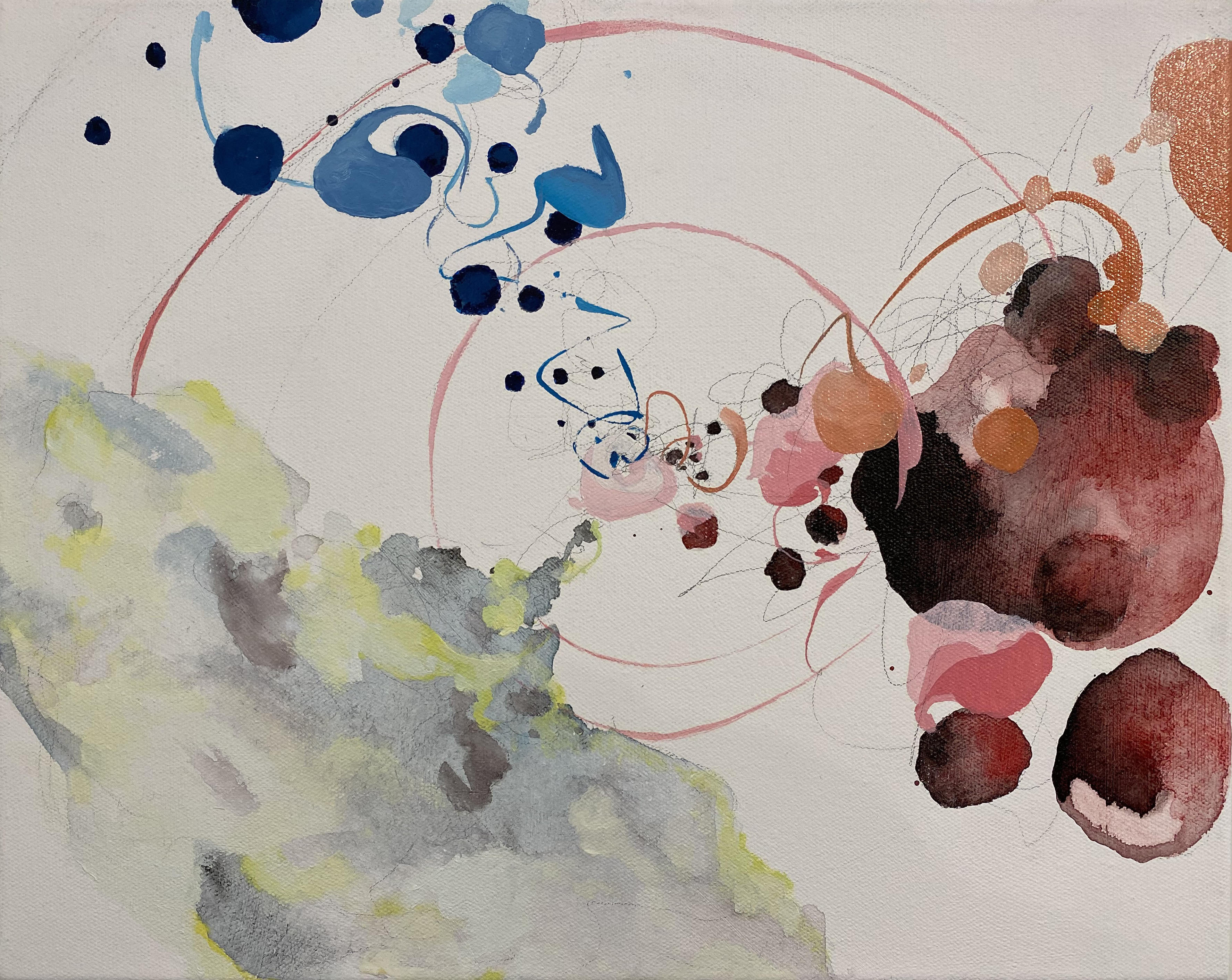 "Sun Rise 4" oil, watercolor and graphite on canvas, 20.5x20.5cm